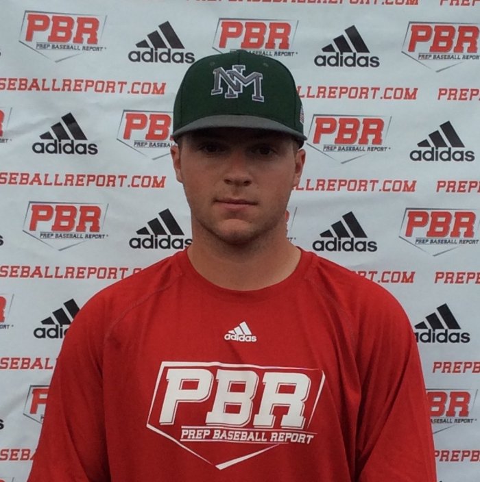 5-foot-11, 200-pound, strong physical frame. A well proportioned athlete, hands and legs have strength, has a durable catchers frame. A right-handed hitting catcher, at the plate the stance is simple, feet are shoulder width apart, front foot starts open, gets back to even on stride, gaining ground with it. The hands held at shoulder height, are strong and get loaded up, bat starts in a flat position on shoulder, hands have separation to them. The swing is strong, is flat across the chest, finishes with two hands above the shoulders. The approach is more to the pull side, makes hard solid contact, has lift to the swing. The tee exit velocity was clocked at was 85 mph, collected a double in game play. Time down the line was at 4.82. Defensively behind the plate, the arm works out of a higher slot, clocked at 73 mph, had a pop time of 2.10-2.28. The feet and hands work well together, gains ground on transfer, could stay lower throughout transfer, will help in pop time. Showed the ability to block and recover in game play, gets around the baseball. Solid follow, reps and practice will refine all mechanics.