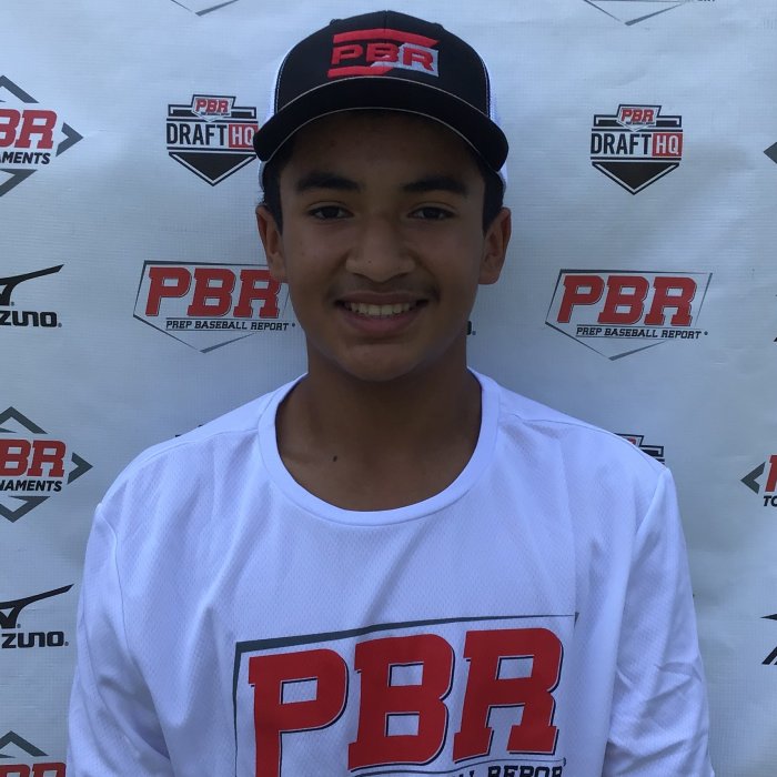 5-foot-5 140-pound, average athletic frame for a 2025. Showed very well on both sides of the field, a two-way player. At the plate, even feet, hands at shoulders, more of a flat setup. The lower half is under control, hands have separation, are back on foot strike. The swing path is level to up, more of a middle to pull side approach. Creating natural lift and loft, has very good power, had an exit velocity of 82 mph. An average runner ran a 7.90 sixty-yard dash, look for time to drop as he gets physically stronger. Took a very impressive round of batting practice. From the outfield threw 71 mph, approach is under control, arm working with minimal effort from a natural slot, long and loose. Off the mound, simple delivery, athletic leg raise, in line stride, lead arm can track longer, pulls off. Showed feel for two pitches, fastball was clocked at 66 mph, located down in the zone. The breaking ball has very good spin, spin rate was up over 2100, thrown for strikes, clocked at 58 mph, a ton more in there. Serious potential to hit at some point.