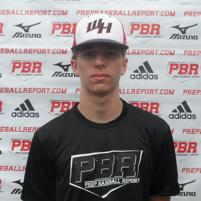 5-foot-11, 160-pound left-handed hitting catcher. Ran a 7.25 sixty on the laser at the event. Pop time of 2.07 and he threw 71 mph down to second base at the event. The transfer can continue to clean up and the throwing will benefit from an off season strengthening program The receiving is trending up as he continues to work on securing the catch. The bat has a tee exit velocity of 84 mph. The setup is wide in base, small pick up and put down of the front foot as the ball approaches the hitting zone. The path is flat to and through contact. Solid hand path.