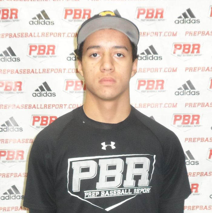 5-foot-9, 145-pound, very athletic frame, shoulders are sloped, neck is long, is put together well for a younger kid, has fast twitch actions to him. A left-handed hitter, the stance is balanced throughout, simple setup, feet are even and hands start at shoulder height. The hands get back in a good hitting position, stride gains ground and is under control. The swing is level through the zone, finishes with two hands. The approach is middle to pull, stays through the baseball well gets extension out front. The tee exit velocity was 78 mph, with a ton more in there. The sixty yard dash was at 7.8, look for that to improve, has he has an easy kick. Defensively, showed good feet from the outfield, uses a high crop hope in his transfer. The arm action is a little longer, opens it early, clocked at 66 mph, stops it at the end, needs to let it out. Worked out at first base as well, fielded ball out front, feet continue to move throughout, good momentum. Footwork around the bag was good, good first quick steps on and off the bag. The arm was clocked at 65 mph from first to third, arm needs to get stronger and loosen it slightly. Off the mound this left-hander has a repeatable delivery, has timing and tempo to it. The hands start high, work downward in rocker step and back up with controlled leg raise. The arm works out of a high 3/4 slot, locates the fastball well to glove side, clocked at 70-74 mph. The breaking ball has more cutter break to it, clocked at 61-62 mph. The athletic ability is advanced, can handle the bat, good looking young kid.