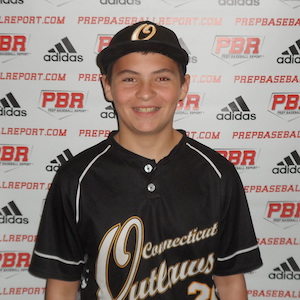 5-foot-8, 140-pound, small, average athletic frame for his age. A right-handed hitter, the stance is wide, even and sits in a small crouch. The hands are set at shoulder height, back elbow extended outward. The swing is flat through the zone, approach is middle of the field, stays through the baseball. The lower half is under control, stride is straight, took a solid round of batting practice. The finish is with two hands. Defensively, plays third, hands are soft, fields out front and keeps his feet moving throughout. The arm action is short and clean, arm clocked at 66 mph, has strength for his age. The feet and hands work well together, he moved very well to the glove side, turns were smooth. Good looking young athlete, strength is a must.