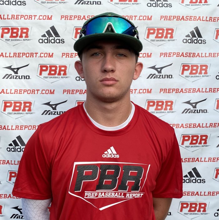 6-foot, 195-pound left-handed hitting catcher. He turned in another good workout with us. He ran a 7.52 sixty at the event. The skill set behind the dish is solid as he threw 73 mph down to second base with a pop time of 1.96. The feet work clean and he showed the ability to get rid of the baseball quickly. The receiving is solid and he secures the catch appropriately. The bat has an exit velocity of 90 mph. The setup is wide in base and the front foot gains minimal ground to the baseball. The path is flat through contact and he displays power potential. He homered and singled in game play.
