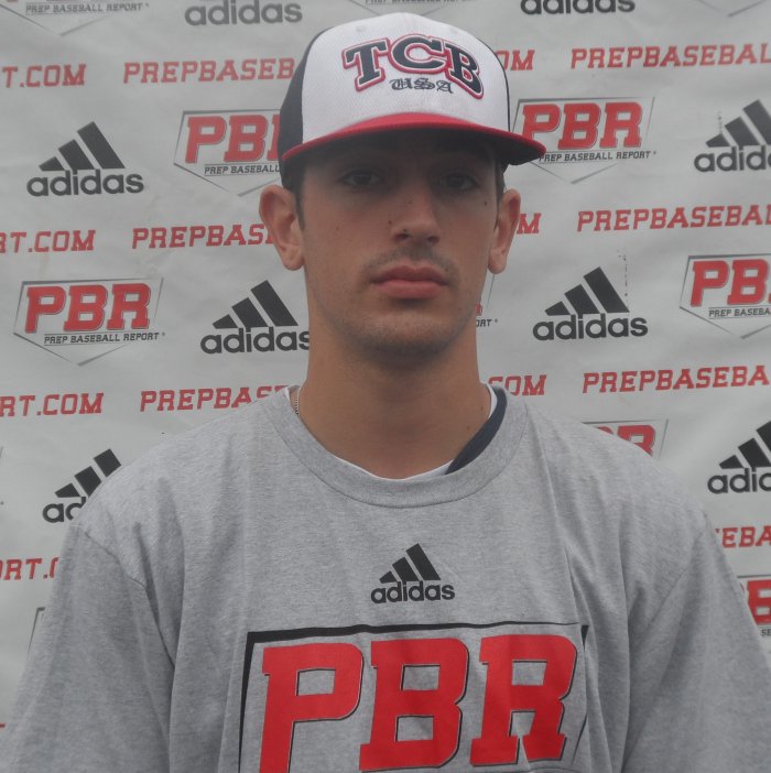 6-foot-2, 180-pound, long, lean athletic frame. The neck is longer, shoulders are rounded, has room for future advancement. At the plate, hits from the left side, feet are set at shoulder width, front foot starts slightly open. The hands are loose at the shoulders, bat starts in more of a flat position. The lower have is under control. Small pick up and put down with stride foot. The swing is down to level to up, is very short to contact. The approach is more middle to opposite, however turned on a ball in game play for a big double. The tee exit is advanced for is age, clocked at 86 mph. Defensively, controlled approach to the baseball, good feet, steps through and gains ground. The arm action is clean on the backside, a bottom to top path, works out of a high ¾ slot, clocked at 79 mph. Throws were downhill and on target, uses a higher crow hop. Off the mound, fastball touched 82 mph, ball comes out of his hand with ease, look for it to climb. The arm works out of a high ¾ slot. The spin on breaking ball is correct clocked at 67-68 mph. The arm is clean and short on the backside, repeats the delivery, inline on foot strike, has some pull with frontside glove. Projects out to be a middle of the order type hitter at the division one level, should be able the gain innings out of the pen.