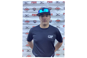 Matt West: 1B/3B, (2025) Stamford, CT. 6-foot, 205-pound mature strong build. Above average projectable at the plate, the right-handed hitter's 98 mph exit velocity ranks him 1st at the event. (76.2 mph bat speed average). (23.7 mph hand speed average). Began in a wide closed stance with an active load, then used a short stride. Bat speed is explosive, displays a level loose swing plane and high finish. Through his round he found multiple barrels with tons of loud contact. Pull side aggressive approach. Above average in the infield, his best throw was recorded at 68 mph; has a clean exchange, soft hands, and athletic quick feet. Fields the ball out front, movements laterally were athletic. Used a high ¾ slot and a short loose arm action while showing consistent accuracy to the base. In the 60-yard dash, he clocked a time of 7.34. Big time power potential, launching baseballs all over the yard.