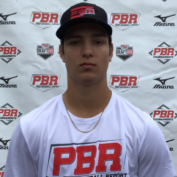 6-foot, 175-pound right-handed hitting outfielder. He ran a 7.5 sixty at the event. The approach in the outfield is online and athletic. The arm has plenty of strength to it, threw 87 mph to the plate during the defensive portion of the workout. The bat has an exit velocity of 93 mph. The setup is wide in base and he uses a knee to knee timing mechanism on the bottom half. The swing has effort in it and the hands work clean. The path is long and flat to contact, the hands are strong and it shows in contact with the baseball. He is a soli prospect.