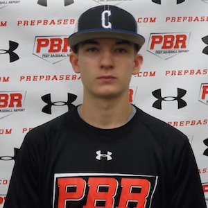 Second PBR event for Matt, showed extremely well this time around. Worked out both as a position player and pitcher. At the plate, the stance looked to be slightly wider than the previous workout. The lower half was much more direct and under control. The hands are set at shoulder height, are loose and really work. The tee exit velocity was 79 mph, up a tick from the fall. Showed a good gap to gap approach, made solid contact in both rounds. In the outfield, he shows an above average arm at 85 mph, works downhill with plus carry. He is very aggressive attacking the ball with solid routes. Ran a 7.25 60-yard dash. First time I’ve seen him off the bump and it's usable. Comes at you out of a high- ¾ slot, fastball was in the high-70s, with more in there. Showed plus feel for a curveball or small slider at 69-70 mph. Not much of a change at this point, the arm is clean and should be able to improve with some work. The delivery is simple, needs to lock down frontside a bit more and land softer, can fix it with reps and practice. The arm looks to be fresh, it's clean and quick. He continues to impress, definite guy to follow, has some athleticism to him, plenty of room to fill out.