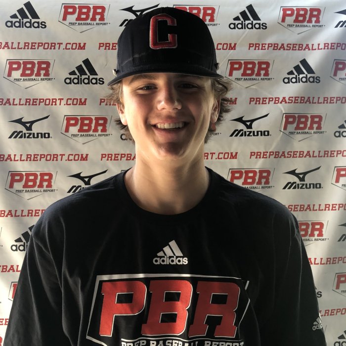 6-foot-2, 180-pound, larger, athletic frame, super athletic, with room for added weight gains, will be very physical at some point. A two-way player, at the plate showed very well, having plus bat speed for his age, clocked at 91 mph. The stance is even, wider set up, hands are held higher, very quiet, small down and back load, clean leg raise, gaining ground. The swing is level to up, barrel is in the zone a long time, spraying the baseball with authority to all fields. The approach and hitting ability is advanced, hung on a tough breaking ball in game play. Defensively, soft hands, comes through the baseball, arm action is short from his ear, with good arm strength, clocked at 80 mph. Looks to be able to handle third base with ease. Off the mound, smooth repeatable delivery, a hybrid start, easy lift, loaded on backside, landing inline to the plate. The arm action is clean, fastball reached 83 mph, working it to both sides of the plate. More of a slurvey breaking ball at 66 mph. Legit two-way player, will be fun to follow over the next couple years.