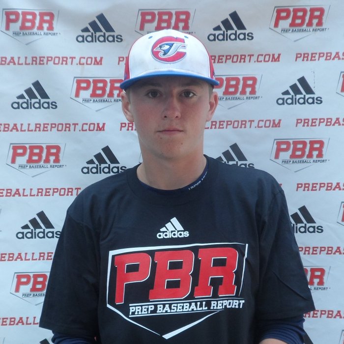 5-foot-11, 160-pound left-handed hitting catcher. Ran a 7.49 sixty on the laser at the event and showed good athletic movements throughout the event. The bat has a tee exit velocity of 85 mph, physical strength is needed to aid the development of his offensive game. Hits out of a wide stance, high back elbow and small bend in the legs. The bat path is long to the ball, flat as he gets to the zone. Small bat wrap should be eliminated to help the length of the swing. Uses a small pick up and put down of the front foot as the ball approaches. Showed ability to stay on the ball in the batting practice session. The receiving behind the dish is solid, securing the catch needs to continue to develop. The arm has 70 mph velocity from behind the dish, that needs to improve with a long toss program. Pop time of 2.13 down to second base as the feet need to be cleaned up and quicken. Did a solid job at the event.