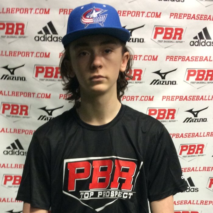 5-foot-10, 138-pound, long, len athletic frame, has plenty of room to fill out. A two-way player, projects off the mound for me. A right-handed pitcher, delivery is repeatable, momentum starts slow builds speed throughout. The hands start and stay at chest high, stays strong on the back half, pitches down hill. The arm action is clean and whippy from the side view, gets extension out front, works out of a ¾ slot. The frontside is inline, tracts correct to the plate. The fastball reached, 73 mph, has life to it, with action to arm side. The breaking ball is advanced for his age, clocked at 61 mph, proper spin with late break to it. Showed feel for the changeup at 64-65 mph. At the plate, hits from the right side, starts open at shoulder width. The hands are super relaxed, bat starts in more of a flat position on back shoulder. Stride has some length to it, weight leaks forward at times. The swing is level, finishing it at the shoulders. The approach is more middle to pull, had a tee exit velocity of 71 mph. Defensively, clean quick feet around the bag at first, hands are soft on picks, soft hands on ground balls. Showed good drop steps in starting the double play. The arm is clean, working out of a ¾ slot, clocked at 70 mph. Love the feel for pitching, velocity should jump at some point, big follow for me, will be attending junior futures for team CT/RI.