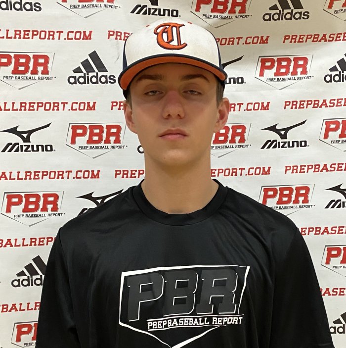 6-foot, 175-pound, average athletic frame, longer neck, sloped shoulders plenty of room for added weight gains. A two-way player, projects more off the mound down the road, pounds the zone with a simple 4-pitch mix. Off the mound this right-hander, slower deliberate controlled delivery, repeats it with ease, strong on the back half, direction is inline. The arm is super clean, working out of a 3/4 to a slightly higher slot. the fastball touched the fastball touched 80 mph, working it in the bottom part of the zone. Thew both breaking balls for strikes, curveball was clocked at 68-69, 1/7 break to it, slider thrown a tick harder at 70-71 mph. Showed feel for a turn me over change up at 70-73 mph. Look for him to pitch at high level, a strike thrower. At the plate, hits from the right-side, slightly open front foot, lower, quiet hands. Lower half is under control, shifts weight to get loaded up. The swing is short to the baseball with hands inside, staying in the middle of the field. The tee exit velocity was clocked at 79 mph and ran a 4.38 from home to 1st. Defensively, has soft quick hands on the catch, feet work with hands, arm was clocked at 81 mph across the diamond. Look for him to jump off the mound.