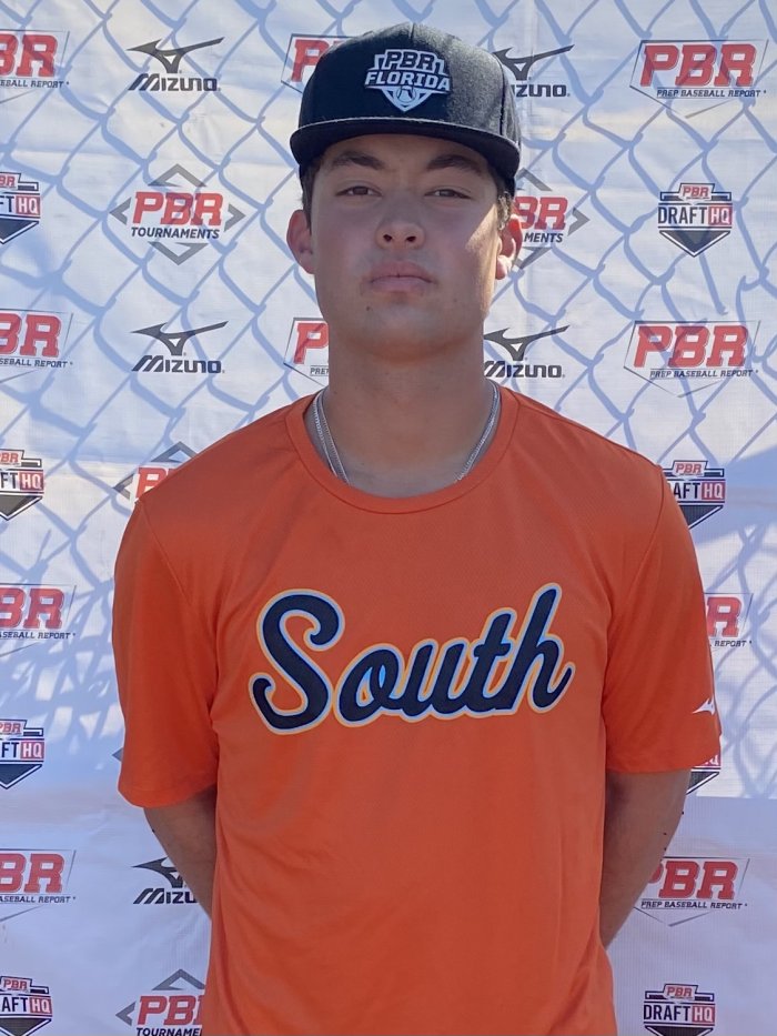 6-foot-1, 180-pound solid athletic build. Solid in the box, the right-handed hitter clocked an exit velocity of 93 mph. (68.85 mph bat speed average). (21.56 mph hand speed average). Starts in a tall balanced stance with a quick load, then uses a short quick stride. Bat speed is electric, exhibits a short upward swing plane and good extension on his finish. Was able to create a lot of loud contact and found multiple barrels. Gap to gap approach. Solid advanced in the infield, his best throw was registered at 82 mph; showed a quick clean exchange, soft consistent hands, and smooth athletic feet. Fields the ball out front, movements laterally were athletic. Using a short arm action, showed consistent accuracy to the bag from a ¾ slot. During the event, recorded a 60 time of 7.5.