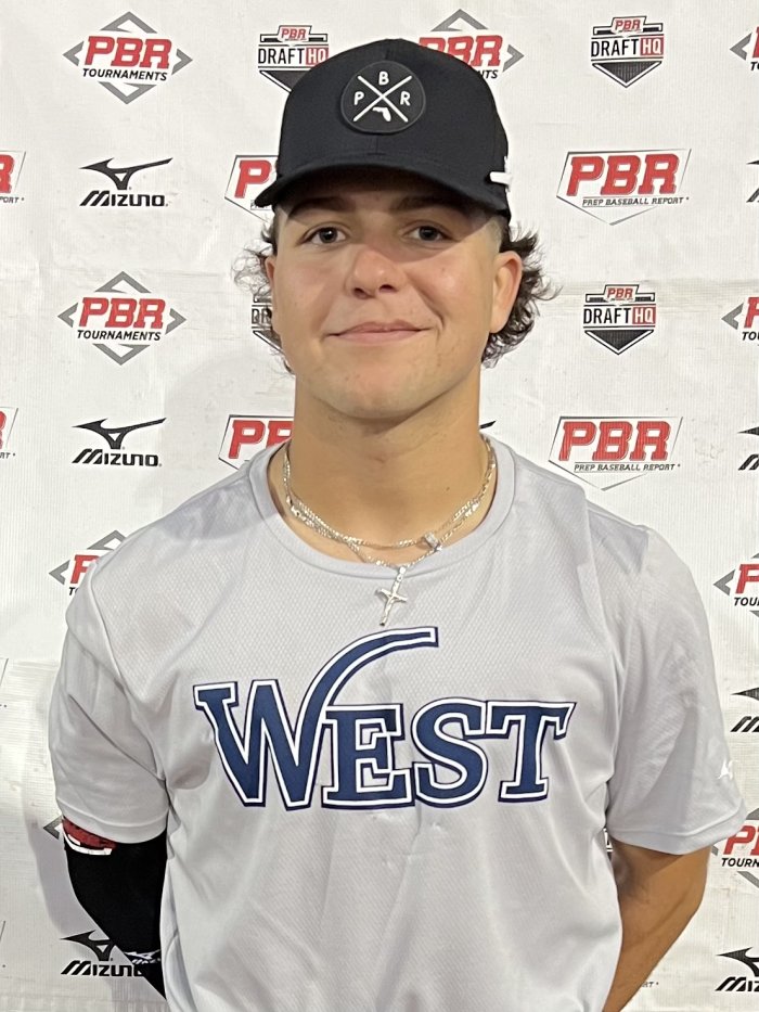 Hit: LHH. Tall, narrow setup. Balanced leg kick load. Aggressive swing. Hands stay inside the ball with present bat speed. Squares up the baseball with a pull side gap approach.