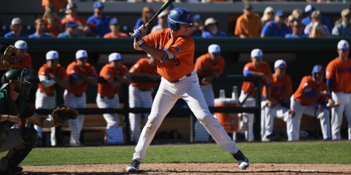 8/1/19:6-foot, 200 pound backstop hovered around a .300 batting average for much of the regular season. However, Smith’s 1-for-20 finish with ten strikeouts dropped his final regular season slash to .233/.343/.400. During my look, his swing was smooth and easy, but had some length making him late to contact. Showed a controlled stride with good separation and extension and used his hips well during his swing. Behind the plate he blocked well with below average receiving skills. Showed an above average arm with average carry, although his 2.00-2.05 POP times had below average accuracy as most throws were off-line. After a strong sophomore season at the plate for the Gators (.270/.392/.428) and in a weak college draft class for catchers in 2020, Smith is likely to jump into early Day Two consideration if he can maintain his offensive production while showing improvement behind the dish next spring. (Seifert)