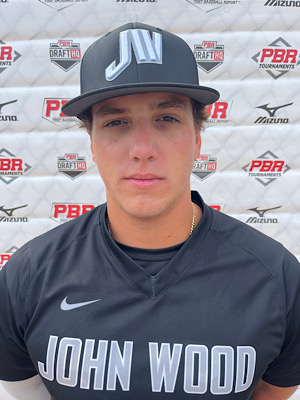 + CIF Carson Moreno (Cristopher Columbus (FL), 2022) has present power production and he took one of the most impactful rounds of BP on the day. Standing in a strong 6-foot-2, 225-pound frame, Moreno led the event in nearly every hitting category. He posted the highest exit velocity of the event (107.7 mph), the highest average exit velocity (104.1 mph), the farthest max distance (413’), the farthest average distance (313’) and he was tied for the first in hard hit percentage (100%). Moreno also led the event in average and max bat speed (79.9 mph; 89.6 mph) and average and max hand speed (24.5 mph; 26.3 mph). The simple, right-handed swing takes little effort to produce loud numbers and he has the inherent bat strength to provide thump within this John Wood lineup.