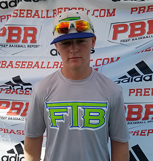 8/18/17 - 5-foot-11, 175 pound catcher. Has a stock strong frame. The right handed hitter starts the load on his toe and gets a quality stride and separation. He is balanced, with a level line drive path through the zone with present bat speed for class. Defensively, he has good hands and topped out at 71 mph behind the plate. Also showed a pop time 2.08.