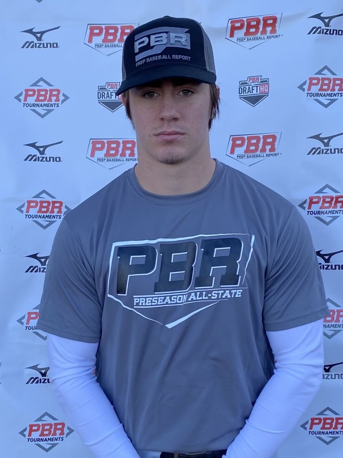 6-foot, 200-pound mature physical build. Solid during batting practice, the right-handed hitter clocked an exit velocity of 93 mph. (64.95 mph bat speed average). (21.27 mph hand speed average). Begins in a crouched wide stance with a tight rhythmic load, then uses a quick controlled stride. Bat speed is quick, displays a simple level swing plane and good extension on his finish. He found multiple barrels with a lot of loud contact. Gap to gap approach. Solid when throwing from the outfield, he showed off his strong arm with throws at velocities of 88 mph;showed athletic feet, a clean natural exchange, and consistent hands. Laterally, movements were athletic and fielded the ball out front. While catching, he made strong, efficient throws to second at velocities up to 80 mph; had a quick natural transfer, smooth fluid footwork, and soft hands. had quick feet and transfers on his throw downs, recording a 1.93-2.02 pop time. Athletic setup with average flexibility. Used an-over-the-top slot with a quick arm action while showing consistent accuracy to the base. Established speed as one of his strengths with an efficient 60 time of 6.97.