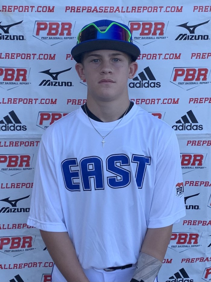 5-foot-7, 125-pound athletic build. Confident during batting practice, the right-handed hitter's best exit velocity was 80 mph. Starts in a tall open stance with an arm bar wrapping load, then uses a leg kick short stride. Bat speed is efficient, exhibits a level upward swing plane and a back foot finish. Found some barrels through his round. Gap to gap approach. Capable in the infield, his best throw was registered at 68 mph; shows quick choppy feet, a natural packing exchange, and soft hands. Fields the ball out front, movements laterally were athletic. Showed consistent accuracy to the base with a quick loose arm action and a high ¾ slot. During the event, clocked a 60 time of 7.52.