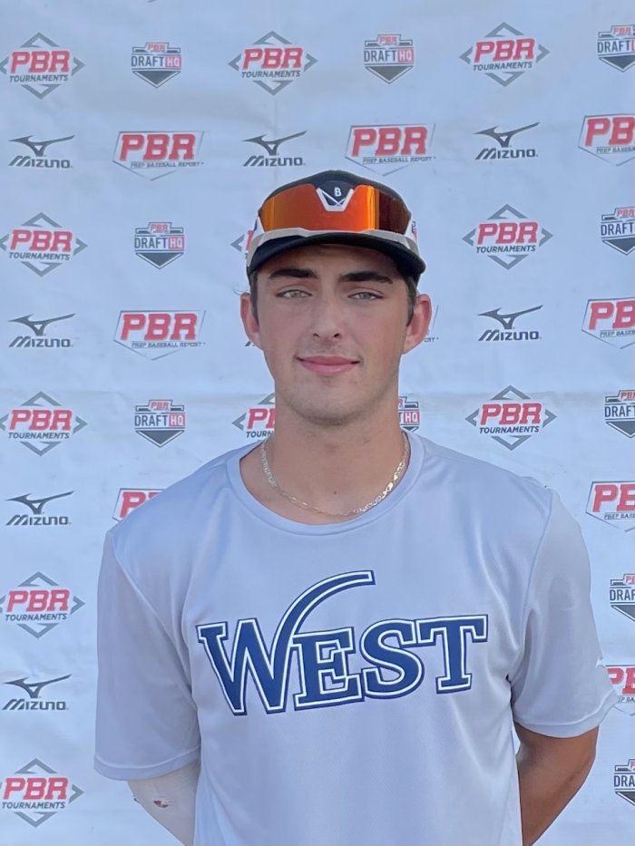South Florida Commit, 6-foot-1, 175-pound solid athletic build. Solid in the box, Riegel had an exit velocity of 94 mph. (68.45 mph bat speed average). (20.96 mph hand speed average). Begins in a balanced athletic stance with a smooth rhythmic load, then uses a short leg kick. Has electric bat speed, short swing plane and balanced finish. Barreled up multiple balls with a lot of loud contact. Line drive gap to gap approach. Smooth in the infield, had a live arm with throws that topped out at 88 mph; had athletic footwork, a clean natural exchange, and sure consistent hands. Fields the ball out front, movements laterally were athletic. Consistent accuracy to the bag, used a long arm action with a low slot. Showed off his speed at the event, running a swift 6.87 60-yard dash. Solid on the mound, showing quick arm speed he used low arm angle with a long arm action. Drop-and-drive type pitcher and uses decent effort. Has an athletic balance point and even shoulders. Lands square with balanced finish. Produced a fastball that came in at 82-86 mph; has running action and command in the zone with heavy movement. (Max spin 2180; Avg 2018). Has down in the zone control and slurvey swing and miss action on his tight slider (70-73). (Max spin 2065; Avg 2065).