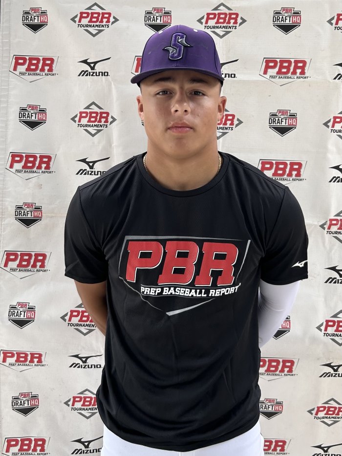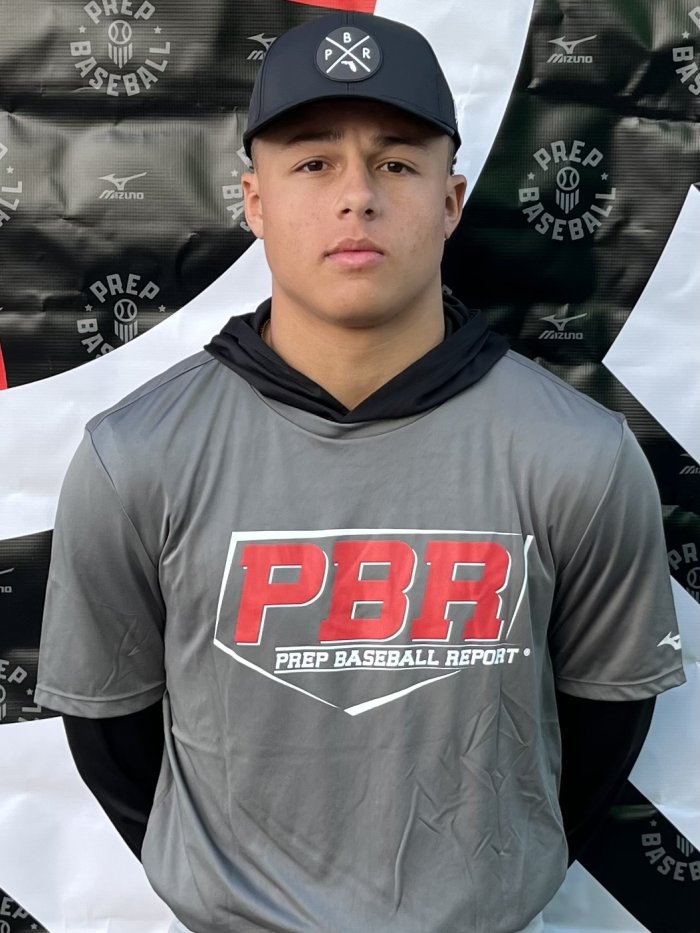 5-foot-10, 150-pound lean athletic frame. Solid during batting practice, the right-handed hitter recorded an exit velocity of 83 mph. (67.4 mph bat speed average). (22.1 mph hand speed average). Starts in a quiet balanced stance with a quick load, then uses a controlled stride. Bat speed is efficient, uses a short simple swing plane and high finish. Found some barrels during his round. Base hit approach. During the event, ran the 60-yard dash in 7.49.