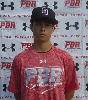 11/7/15- 5-foot-9, 145 pounds with a lean and athletic body. In the field he needs to work on fielding through the ball without stopping his momentum. He showed enough arm to stay on the left side of the infield with a short, high 3/4 arm slot. He threw 73 mph across the diamond. At the plate he gets a nice separation for his load and good leverage in his swing. He showed good bat speed with a nice plane through the zone. He consistently hit hard line drives and could really turn on the inside pitch and keep it fair.