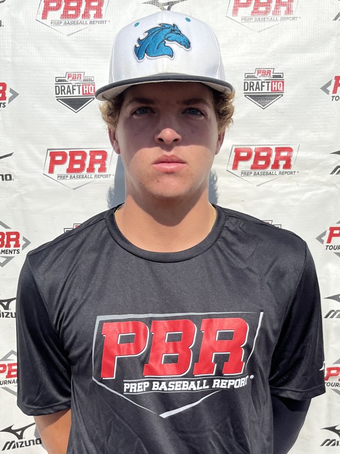 6-foot-1, 175-pound physical athletic build. Capable in the box, the left-handed hitter recorded an exit velocity of 85 mph. (60.64 mph bat speed average). (17.44 mph hand speed average). Started in a balanced tall stance with a tight compact load, then used a short quick stride. Has a short simple swing plane, quick efficient bat speed and high good extension on his finish. Found a few barrels with loud contact. Line drive approach. Capable while in the infield, registered his best throw across the diamond at 73 mph; has a fluid clean exchange, choppy in control feet, and sure hands. Laterally, movements were developing and fielded the ball out front. Showed a short quick arm action and a high ¾ slot with decent accuracy to the bag. During the event, recorded a 60 time of 7.53. Solid confident on the mound, showed a high ¾ arm angle and a moderate longer arm action with consistent developing arm speed. Feel type pitcher and shows decent effort. Tall balance point with in line shoulders. Lands square with balanced finish. Threw his fastball 71-74 mph; had slight running action and command arm side around the zone. (Max spin 1931; Avg 1791). Had a 11/5 curveball (59-62) that showed gradual action and occasional command. (Max spin 1614; Avg 1498).