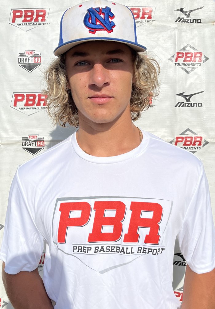 Hits: RHH. Tall setup, in rhythm. Hands stay inside baseball. Line drive, gap to gap approach. Hard contact out front.