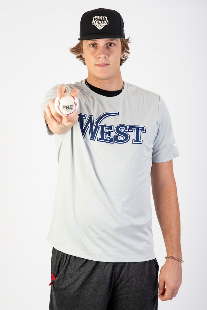 6-foot-7, 230-pound strong athletic frame. Projectable on the mound, had a long arm action and a ¾ arm angle with quick arm speed. Drop-and-drive type pitcher and shows decent effort. Displays even shoulders with an athletic balance point. Lands square with a falling off finish. Threw his fastball 85-88 mph with a max of 89 mph; shows running action and command consistent around the zone with heavy movement. (Max spin 2450; Avg 2297). Had late swing and miss action and consistent low in the zone control on his tight curveball (68-71). (Max spin 2366; Avg 2211).
