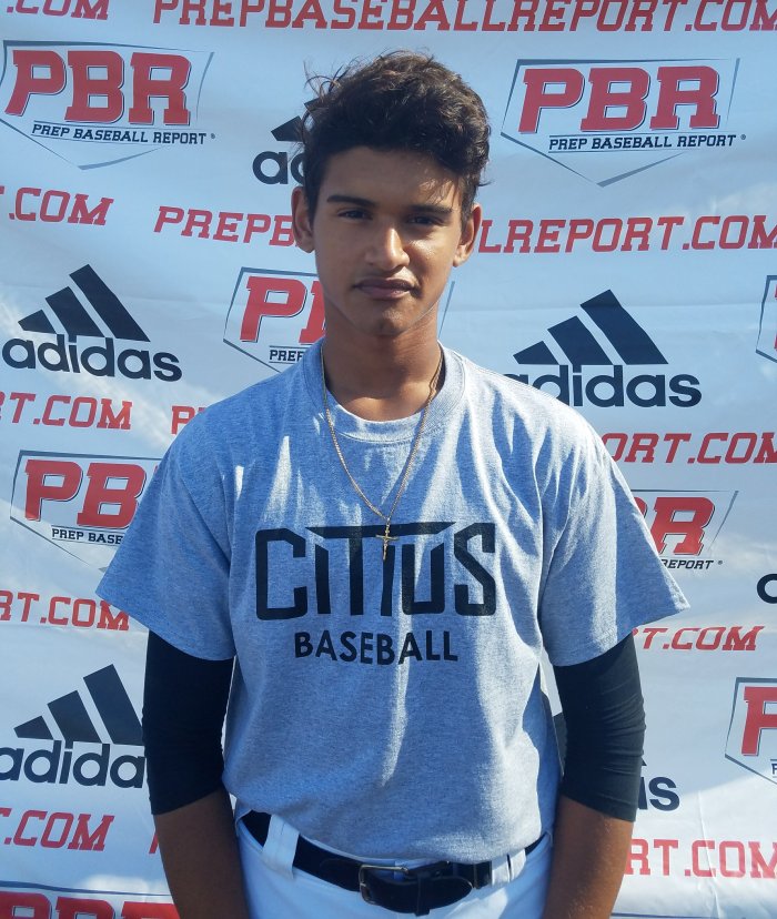 12/16/17- Wide shouldered, long frame. Stands roughly 6-foot-3, he comes through the ball well in the outfield and shows some athletic actions. Offensively, there is some length, but shows potential. There is a projectable frame and upside to follow going forward.