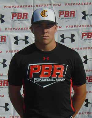 6/17/14 - 6-foot, 170-pound left-handed hitting 3B/RHP impressed with two-way ability at the plate and on the mound throwing three pitches for strikes. Threw 79-81 mph from loose, high ¾ arm action with arm side run. Stride direction stays online towards home plate with smooth rhythm in repeatable delivery. 11/5 curveball ranged from 62-66 mph with gradual break. 68-69 mph changeup was thrown near fastball arm speed for strikes with occasional fade. At the plate, hits from a tall, narrow, slightly open setup with good rhythm in hands loading down and back slightly. Showed power to his pull side, producing up to 81 mph exit velocity, well above average for his age. Showed solid actions at third base and threw 74 mph across the infield. Ran 7.65 in the 60.