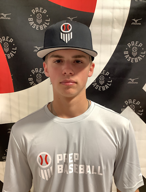 Hit: RHH. Upright and even stance. Lower hand set. Higher leg lift into the swing, stays inside the ball well. Developing pop. 61.1 mph bat speed with 9 G's of rotational acceleration.
