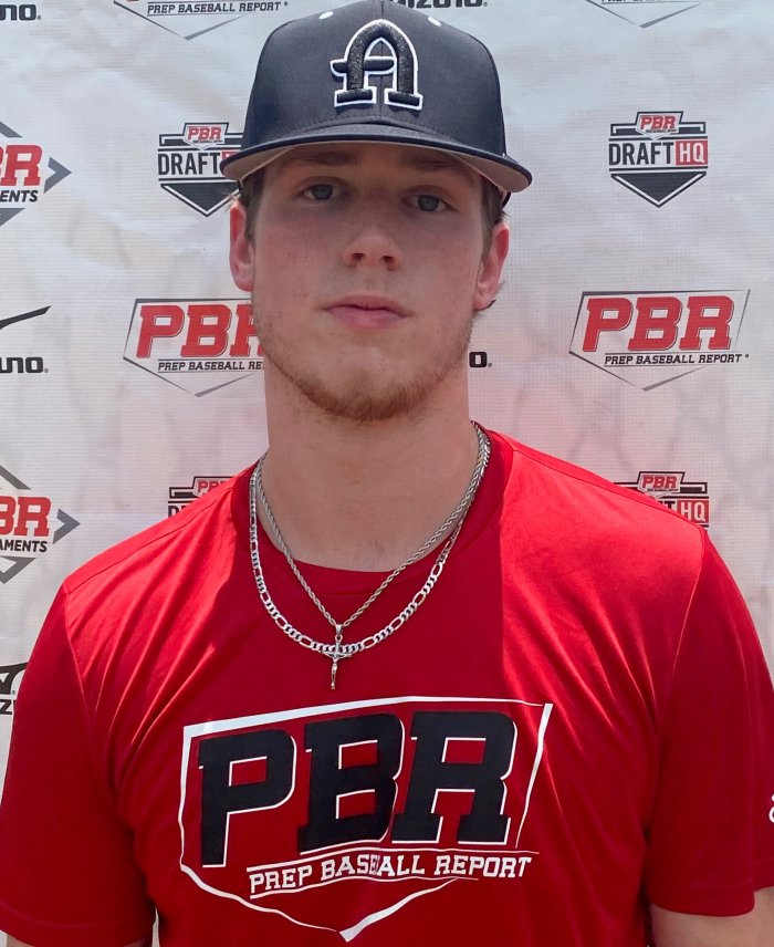 5-foot-11, 185-pound right-handed hitting two-way prospect, strong build, physical lower half, ran a 7.75 laer-timed 60. Offensively, balanced setup, short hand load back, short toe-tap stride to a balanced position. Short, quick swing, keeps hands inside as he looks to use the pull-side, 85 exit velocity off a tee. Defensively, short, clean arm action on the back-side to a ¾ slot, 82 across the infield. Plays through the ball with competent hands and smooth footwork, good feel around the bag and on double plays. On the mound, arm works long with some arm speed to a high ¾ slot, repeats. Drop and drive delivery, works on-line, finishes square to home with a high finish of back leg. Fastball sat 77-80, touched 81. Offered up two breaking balls, a slider and curveball, both at 68-70. Slider has sweeping action while the curveball took a 12/6 shape.