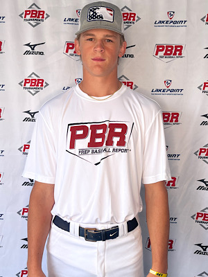 Hit: RHH. Wide base, rocks back and forth with smooth rhythm, hands start near ear and load back with a barrel wrap, short leg kick timing trigger, good balance. Swing path is long to the zone, long through, gap-to-gap hitter with present pull-side power, quick hand and bat speed.