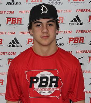 5-foot-10, 161-pound left-handed hitting 2-way player. 7.47 runner. Square stance with leg kick trigger, line drive swing plane, stays on and through contact, shows pop in bat to all fields, high rate of hard barrel contact throughout bp, 85 mph exit velocity. Solid footwork with clean transfers, has actions for age, hands are sure and shows accuracy and carry to bag, 79 mph arm strength across infield. On mound; longer side step into slight tuck and turn balance point, lands slightly across body, clean compact arm action, avg. extension to plate. Fastball was 78-80 mph with slight running action to arm-side of plate. Shows ability to land 11/5 breaking ball for strikes; has tighter spin and solid depth. Shows flashes of fade on changeup with varying action at plate.