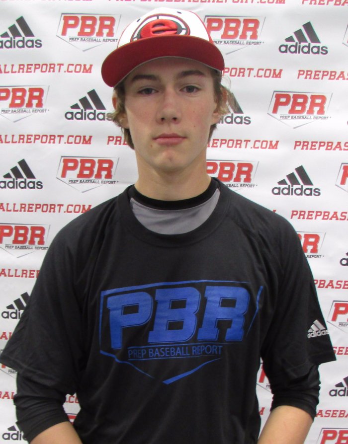 8/13/17- 6-foot-1, 175 pound two way player ran a 6.85 60 yard sprint. Slightly open stance, toe tap trigger, line drive swing plane. Ground ball contact during round of BP. Posted an exit velocity of 84 mph off a tee. Average actions in the infield, clean transfers, quick release, threw accurately across at 72 mph. On the mound, topped out at 74 mph with his fastball. Repeats mechanics well, flattens out on his backside. Arm is long on the back and out front, front side stays closed. 10/6 shape on 68-69 mph breaking ball. Feel for CH down in the zone, arm has tendency to slow on backside on CH.