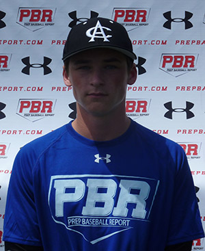 8/4/15- 5-foot-10, 155-pound right-handed hitting middle infielder. 6.72 runner. Square stance with in-line stride. Slight shoulder load. Short to contact with line drive swing plane. Gap to gap approach and uses whole field. Average pop in bat. 79 mph exit velocity. Flashes athleticism in field. Solid actions. Will benefit from following throws across diamond and using feet more. Clean arm action with accuracy to bag. 80 mph arm strength. Simple mechanics on mound. Tuck and turn delivery. Clean arm action. Fastball had boring run at 70-74 mph. 11/5 breaking had loose spin and gradual break. Changeup thrown near fastball arm speed with avg. fade and action.