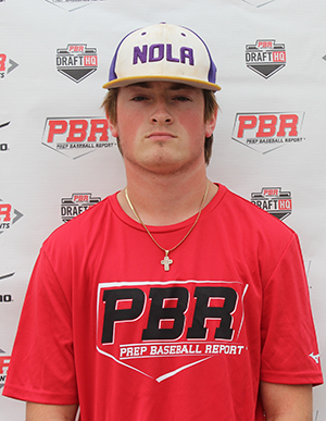 5-foot-10, 152-pound left-handed hitting catcher. 7.51 runner. Taller open stance, has present strength for age, deeper load with leg kick trigger, some stiffness in legs effecting balance, shows above avg. pop in bat to right-center gap, pull approach, soft flare contact to opposite side of field, 82 mph exit velocity. Quiet movements behind plate, sticks pitches in zone, shows ability to block, has quick feet and exchange on throws, solid direction to target, avg. accuracy to bag, tends to leave ball short to bag, 75 mph arm strength with 1.98-2.14 pop times.