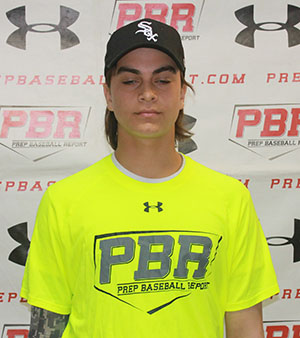2/22/15- 6-foot-2, 175-pound, switch-hitting multi-positional player with a lanky, athletic build. Behind the plate has a short arm action from an over the top arm slot. Accurate throws with carry. Soft hands, with quick, fluid footwork. Popped 2.11-2.18 and threw 75 mph from the crouch. In the field has a long, loose arm action from a ¾ arm slot. Threw 82 mph across the infield. From the right side hits from a wide base with a linear lower half. Long swing path with extension and whip. Showed more pop from the right side. From the left side hits from a wide base with a heel lift stride. 82 mph exit velocity from a tee right-handed and 83 mph exit velocity from a tee left-handed. Home to first at 4.68. Showed projection on the mound working from a ¾ arm angle with a long, loose arm action, with a slight wrap. Slight drift to the plate with some rhythm and a closed landing. Fastball missed arm side and high showing arm side run sitting 79-82 mph. Curveball showed 11-5 shape at 60-63 mph. Changeup sat 70-73. High level prospect. 10.21.14 - 6-foot, 160-pound lanky and athletic switch hitting catcher/right-handed pitcher impressed as one of the top 2018’s in attendance at October’s Underclass Showcase. Natural right-handed hitter, but more whip and exit velocity with left handed swing. Balanced, spread out approach from both side, hands load smoothly, short stride, front foot turns in to create torque more in left-handed swing, long and uphill from both sides, aggressive finish (smacks barrel against his back making an audible sound), future power potential from both sides of the plate. 80 mph exit velocity from the left side, 75 mph from the right side. Defensively behind the plate, threw 73 mph from the crouch from short, ¾ arm slot with some carry, but two-seam action due to arm slot. Pop times ranged from 2.25-2.40 to second. Ran an 8.42 60. On the mound, fastball sat 79-80 mph from long, loose, high ¾ arm slot, wraps wrist in back of arm swing, still gets extension and finish with some arm side run. 12/6 breaking ball with gradual break, backed up at times from 60-62 mph, better out of the stretch. Threw sinking changeup 69-72 mph. High follow with the bat and on the mound.