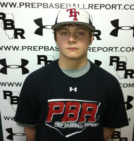 4.15.15 - Texas Chrisian recruit, currently ranked No. 3 in Illinois’ 2016 class, No. 12 in overall rankings. Physically impressive 6-foot-1, 200-pound athlete, proportional strength, developed lower half. Will play 3B at next level, but starts at SS for Lake Forest. Defensively, jumps off field with his plus arm strength (88 across infield), athletic arm and hands. Offensively, is a switch-hitter with juice from both sides of the plate (98 exit velocity from right side; 91 exit velocity from left side at PBR Preseason All-State Showcase). In game, showed relaxed, advanced approach from both sides. Tracks pitches well and didn’t chase pitches out of the zone. Had three of the hardest hit balls of the game with nothing to show for it. From the right side, he squared up two balls to centerfield, one which was robbed on a diving catch. From the left side, hit a laser to third base that was snagged. Also walked and scored a run. Didn’t pitch in game, but was 90-93 at the Preseason All-State Showcase in February.