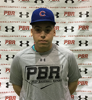 1.28.17 - 5-foot-10, 190-pound, right-handed hitting infielder. Offensively, right-handed hitter, open setup, hands load back, leg kick. Pull approach with a slighty uphill path. Registered an 81 mph exit velocity from a tee. Defensively, reliable hands on the infield. Short arm action from a high ¾ slot. Throws clocked at 78 mph across the infield. Ran an 8.12 laser-timed 60.