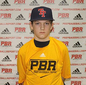 5-foot-3, 110-pound, left-handed hitting/throwing, two-way player. At the plate, balance setup, smooth back load, short toe tap trigger. Uphill bat path, showed line drive ability with some lift through swing, utilized all fields with rhythm involved. Exit velocity topped 62 mph from a tee. Defensively, steady footwork, arm plays long, over the top slot, throws topped 49 mph across. 9.30 runner in the 60. On the mound, advanced for classification, deliberate delivery, works in line, lands square, athletic finish out front. Short arm, quickness out front, high ¾ slot. Fastball played 59-61 mph. Curveball 1/7 shape, 49-50 mph. Changeup cut and sank, 53-54 mph.