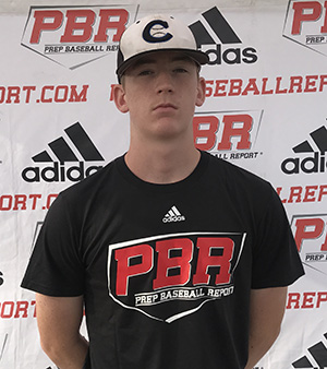 8/9/18 - 6-foot-2, 175-pound, right-handed hitting infielder, lanky, athletic, projectable frame. At the plate, balanced setup, smooth load, short stride, maintains control. Strong, loose hands, short bat path, high finish, line drive pop, rhythm involved. Generates quick bat speed, exit velocity topped 90 mph from a tee. Flared a single to right field in game play. Defensively profiles at the hot corner, steady hands, clean transfer, plays through the baseball. Arm plays loose, long to release, high ¾ slot, throws topped 79 mph across the diamond. 7.36 runner in the 60.
