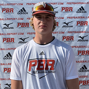 7/23/18 - 6-foot-2, 205-pound catcher, large frame. Right-handed bat carries strength, balanced setup, short toe tap stride. Path is short with slight uppercut, 87 mph exit velocity from the tee. Above average arm strength for his age, 77 mph out of the crouch, over the top slot, flashed carry. Gets tall out of the crouch, feet work directional, short steps. 2.18-2.25 pop times. 4.92 runner down the line.