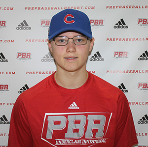 8.16.16 - 5-foot-10, 155-pound, right-handed hitting RHP/OF. Projects well on the mound. Works from a low ¾ arm angle with a short, quick arm action. Will drop down to sidearm. Tall and fall delivery with easy effort and an upright finish. Fastball showed running action at 75-77 mph for strikes. Slider has sweeping frisbee action at 66 mph. Slows arm on changeup that showed occasional sinking action at 64-65 mph. Defensively has a loose arm action. Accurate throws with carry throwing 76 mph from the outfield. Plays thru the ball with a clean exchange. At the plate hits from a balanced setup with a toe tap stride and a good lower half. Gap to gap hitter with a long swing path. 74 mph exit velocity from a tee. Ran the 60 at 7.97.