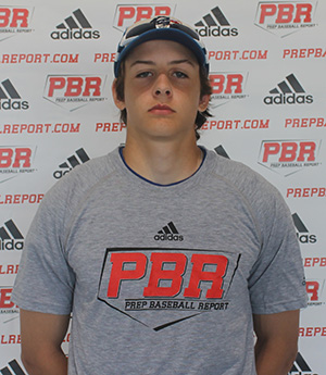 6.7.17 - 5-foot-10, 145-pound left-handed hitting LHP/OF with a lanky frame. On the mound works from an over the top arm angle with a short arm action. Tall and fall delivery with regular effort. Open landing with smooth rhythm. Fastball was straight at 72-73 mph. Curveball has 1-7 shape with gradual action at 57-60 mph. Changeup has fading action at 65-67 mph. At the plate hits from a narrow, open setup with a short stride. Short, uphill swing path. Opposite field hitter. 77 mph exit velocity from a tee. Ran the 60 at 7.20. Short arm action from a high ¾ slot. Threw 76 mph from the outfield.