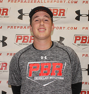 2.19.17 - 6-foot-3, 193-pound, two-way prospect with a strong, durable frame and solid lower half. On the mound, right-handed pitcher, made a jump in velocity and stuff since the last time we had seen him; fastball sat 84-86 mph, touched 88. Works primarily from the stretch, stays on-line, lands closed, and some effort throughout. Arm has some length on the backside, loose and whippy out front from a ¾ slot. Fastball, heavy action at times, gets sink when down in the zone. Curveball, flashed tight spin, sharp 11/5 action, inconsistent in the zone, 70-73 mph. Changeup, maintains fastball arm speed, arm-side-run, sink at times, 79-82 mph. High follow 2018 right-handed pitcher. Offensively, right-handed hitter, with some looseness and strength through contact. 86 mph exit velocity from a tee. Balanced setup, loads on his backside, short stride. Aggressive swinger, uphill path and gap-to-gap approach. Defensively, arm action similar to on the mound, loose and quick, throws carry across the diamond and clocked at 82 mph. 7.70 runner in the 60.