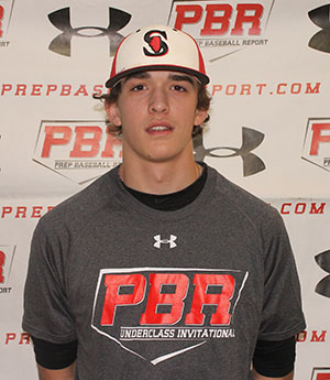 1.18.15 - 6-foot-1, 170-pound, lanky, athletic frame, right-handed hitting OF/C hits from a tall, open setup, hands held high, load back smoothly, long, slightly uphill bat path, strength in swing, feel for barrel, 83 mph exit velocity off the tee, shows power from gap-to-gap. Defensively, impresses in the outfield, threw 74 mph from the outfield from long, high ¾ arm slot with accuracy. Behind the plate, sat high in stance, pop times ranged from 2.11-2.26 with accuracy. Threw 71 mph out of the crouch, long arm action, takes some time to get rid of it, but puts the ball on the bag. Ran a 7.93 60.