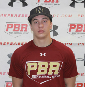 8/9/13 - 5-foot-10, 160-pound athletic pitcher who showed solid feel and projectability. His arm is long and loose, and he throws from a high ¾ slot. He has a tall and fall delivery with rhythm, easy effort, and showed that he can repeat it with consistency. Showed advanced feel for his fastball, which sat 84-85 mph, touching 86 mph, with plus arm side run. His breaking ball was 75 mph, with one plane action. Throws a splitter with quality sinking action at 74-75 mph. In game action he flashed signs of dominance with two strikeouts.