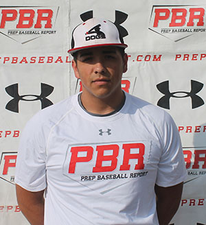 8/5/15 - Strong lower-half 5-foot-10, 195-pound right-handed hitting infielder and pitcher. On the mound the right-handed pitcher featured some arm strength. Registered the highest velocity of the event, 86 mph. Fastball had late life, sitting 84-85 mph and touched 86. Deliberate delivery with some rhythm. Short-arm action, over-the-top slot and some effort. Curveball thrown for strikes, 11/5 action, 70-71 mph. Change-up featured inconsistent action ranging 73-77 mph. One flashed arm-side-run and slight sink. Interesting arm that is currently uncommitted in the 2016 class. Offensively, strength through contact, evidenced by one of the better exit velocities of the event, 90 mph. Flashed a quick bat at times with a level bat path through the zone. Balanced, tall setup, no load and short stride. Gap-to-gap type hitter. Defensively, arm strength across the infield, carry and a true flight on his throws. Short-arm action, high ¾ slot, with some accuracy. Clocked at 82 mph across the infield.