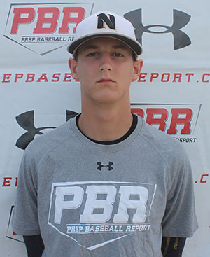8.9.14 - 6-foot-3, extremely lanky 155-pound left-handed hitting outfielder/left-handed pitcher impressed as one of the top two-way talents at this year’s Unsigned Senior Games. Hits from an open stance, hand load back smoothly, long stride, dives at times, short, level bat path with fluid rhythm and 82 mph exit velocity off the tee. Went 2-for-5 with two singles during game action. Defensively, fields position well, fluid footwork, clean exchanges, plays through the ball athletically. Threw 87 mph from the outfield from long, loose, high ¾ arm slot with plus carry. Athleticism and crow hop ability bodes well for future velocity gains on the mound, where he really impressed striking out five in two perfect, scoreless innings. Ran a 7.23 60 and 4.50 from home to first. Tall and fall delivery, same loose arm action as in the outfield, smooth rhythm, level shoulders, lower half stride direction stays in line with home plate, lands square. Fastball sat 79-81, touching 82 mph with sink. Gets on hitters quickly thanks to effortless delivery and arm action. Threw sweeping slider for strikes at 66-69 mph, buried it down in the zone with two strikes getting three swinging strikeouts. Changeup was also thrown for strikes at 68-72 mph with sink. Mutter has a plus feel for pitching and the projectable frame to envision upper 80’s velocity in his future once he adds weight.