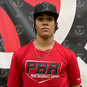 1B/OF Karim Patterson (Latin School of Chicago) fills out the uniform with an impressive 6-foot-1, 196-pound frame, present strength with sloped shoulders and an athletic look. The L/L first baseman took an easy round of BP, looking to lift the baseball to his pull-side with a max EV of 97.4 mph, reaching up to 368’ for his max distance while working on the sweet spot 82% of the time per TrackMan. Upside left-handed stroke with some power potential as he fills out. He moves with ease around the bag at first base, showing steady hands with fluid footwork. Similarly steady hands from the outfield, working up to 89 mph from a crow hop.
